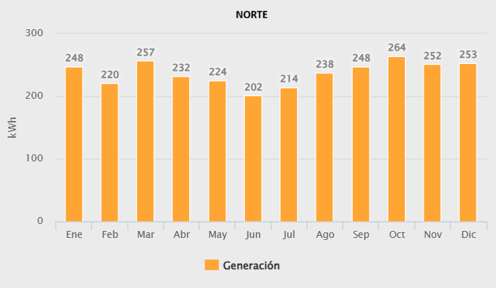 kwh/mes Generados en el Norte de Chile