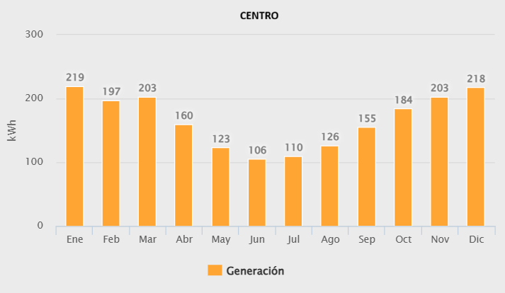kwh/mes Generados en el Centro de Chile