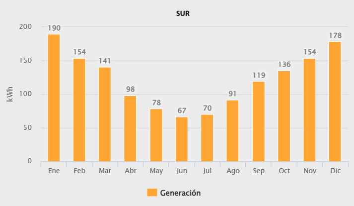 kwh/mes Generados en el Sur de Chile